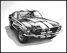 These are B&W prints made from my original pencil and ink drawings. All are 11" x 17", suitable for matting into 16x20 frames (except for 3-View 68 Shelby GT-500)